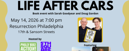 Spend an evening with Doug Gordon and Sarah Goodyear, the hosts of The War on Cars podcast, as they come to the city of brotherly love promoting their book Life After Cars. At this special event, the authors will discuss the negative impacts of car-dependency and how we can create safer, more livea…