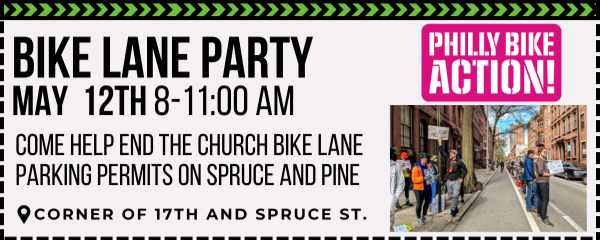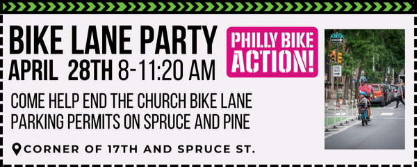 Come join the party and help end the church bike lane parking permits on Spruce and Pine streets. Bring your good vibes, your bike, and your voice! Viva la bicicleta!!!
